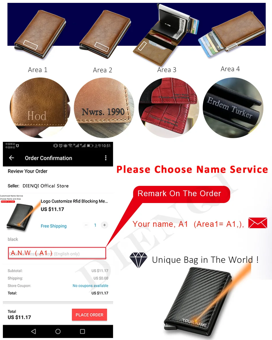 1.Please give us your name within 24 hours or we will add the receiver name on the wallet.
