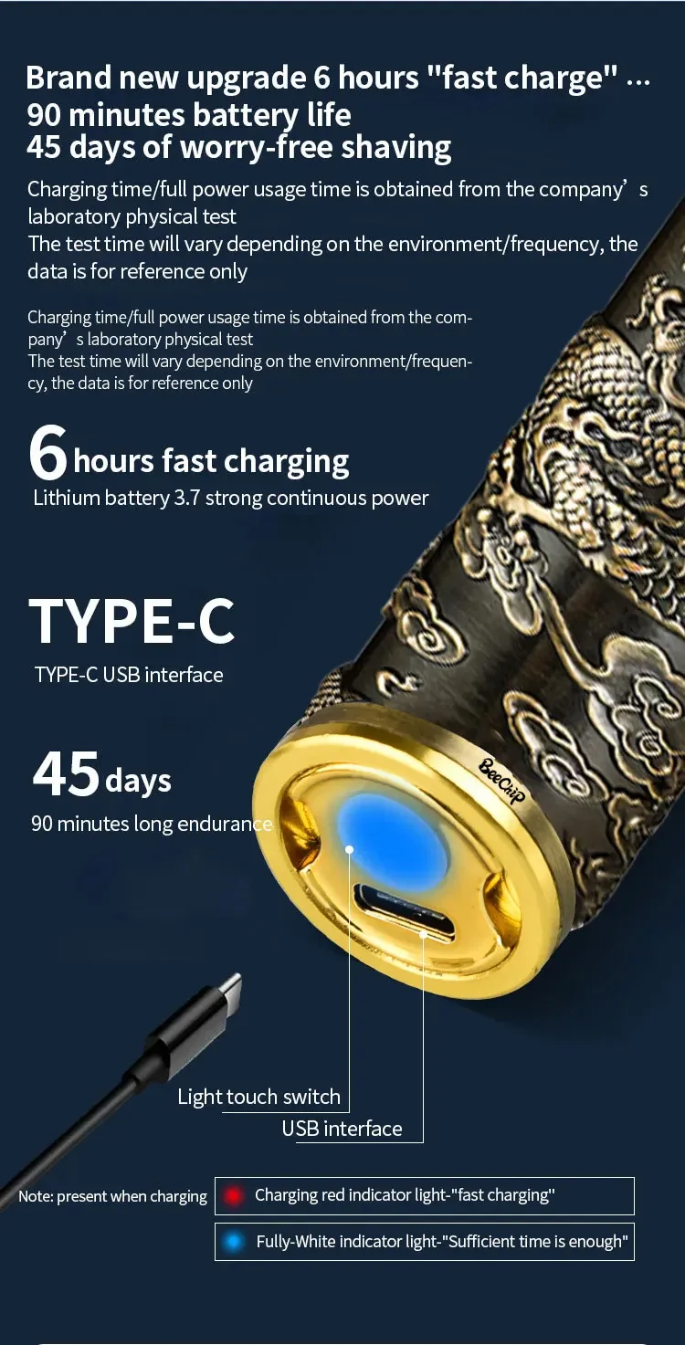 • Unique Design :The razor features a dragon pattern design that adds a touch of style to your grooming routine.