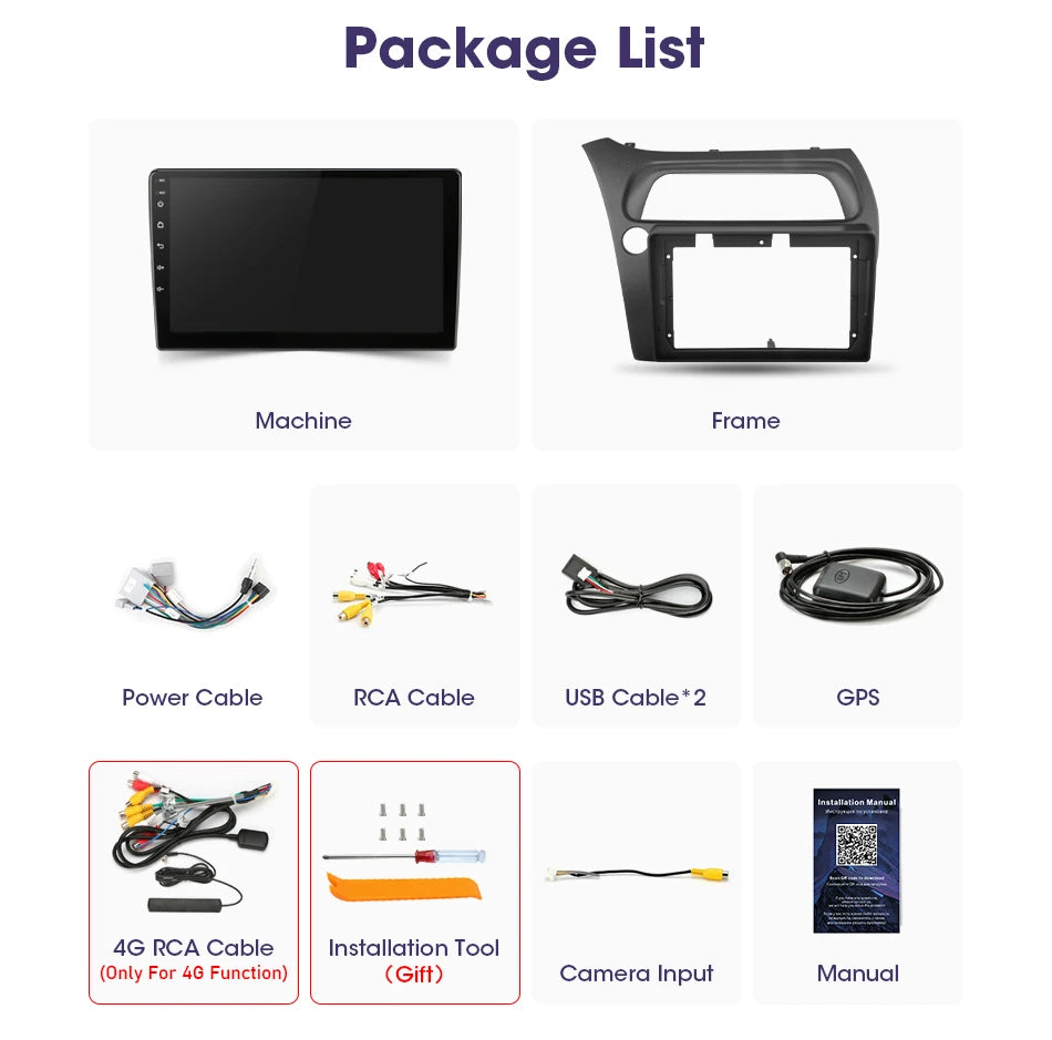 For Honda Civic Hatchback 2006-2011 Android 12 Car Radio Multimedia Video Navigation 2 Din Stereo DVD Head Unit Speaker Carplay