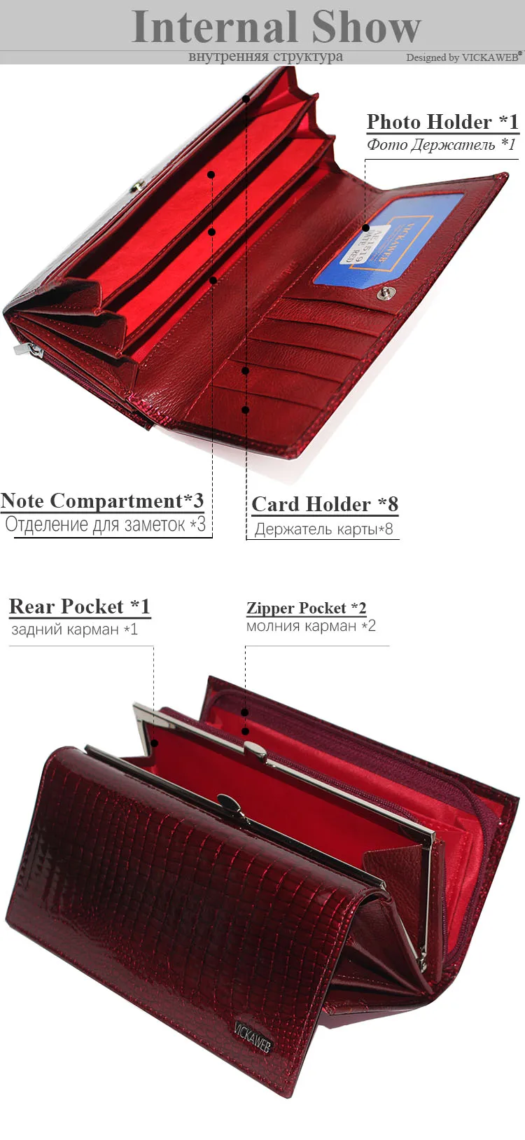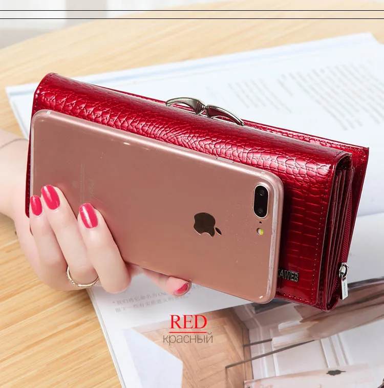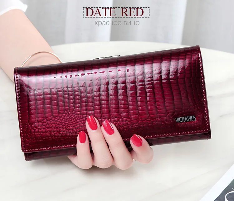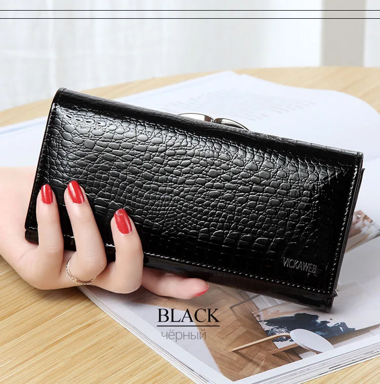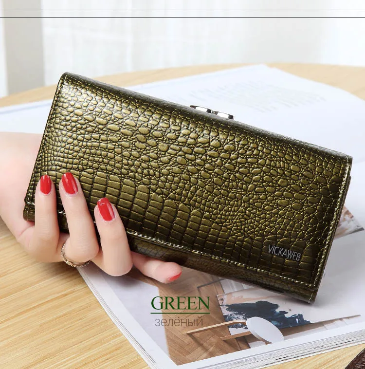 Free Gift Genuine Leather Womens Wallets Patent Alligator Bag Female Design Clutch Long Multifunctional Coin Card Holder Purses