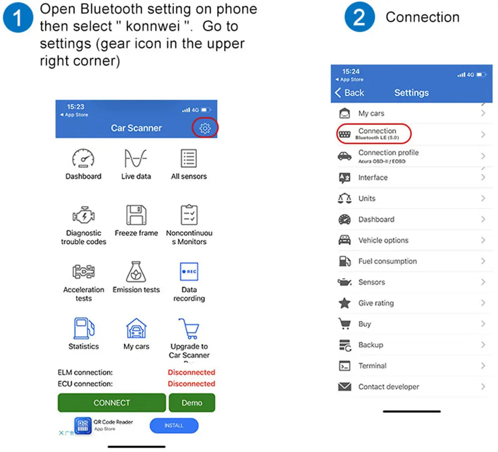 name: Konnwei Bluetooth 5.0 ELM327 V1.5 OBD2 Scanner