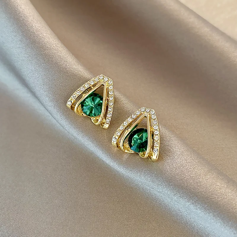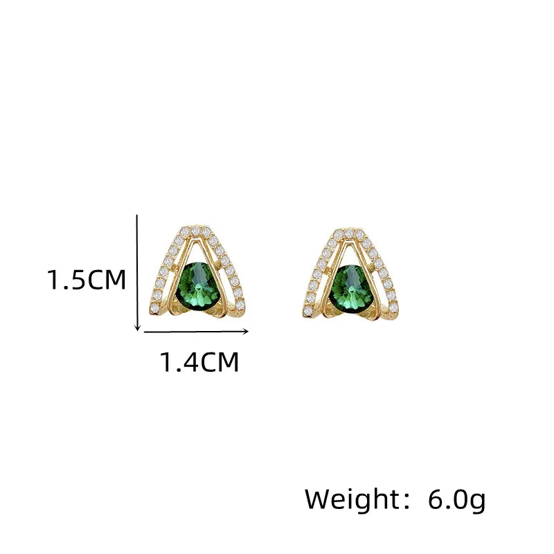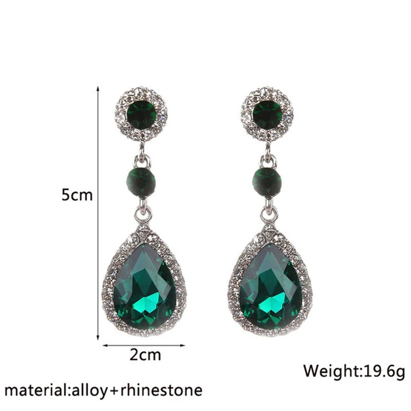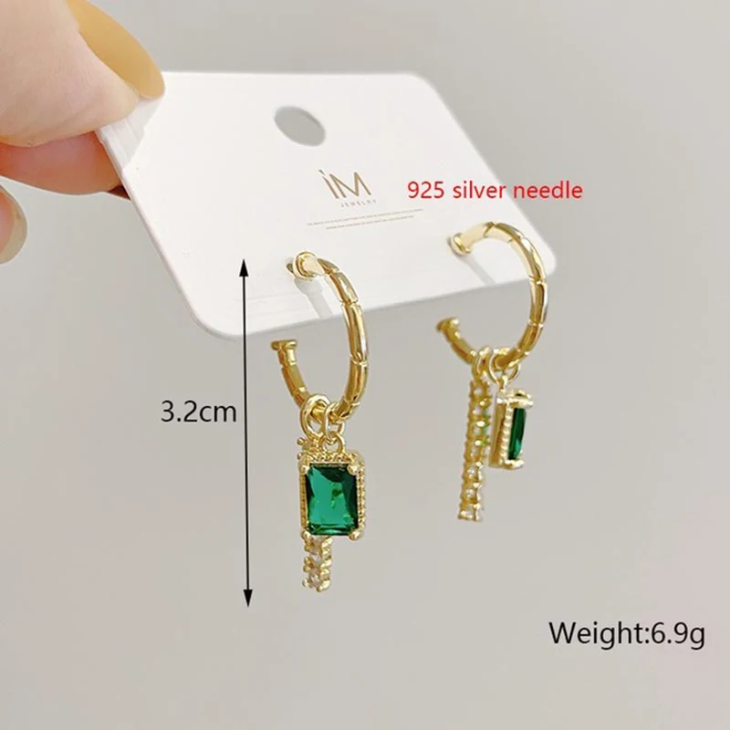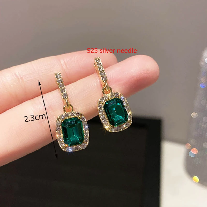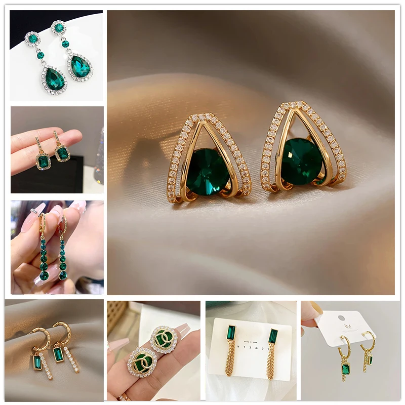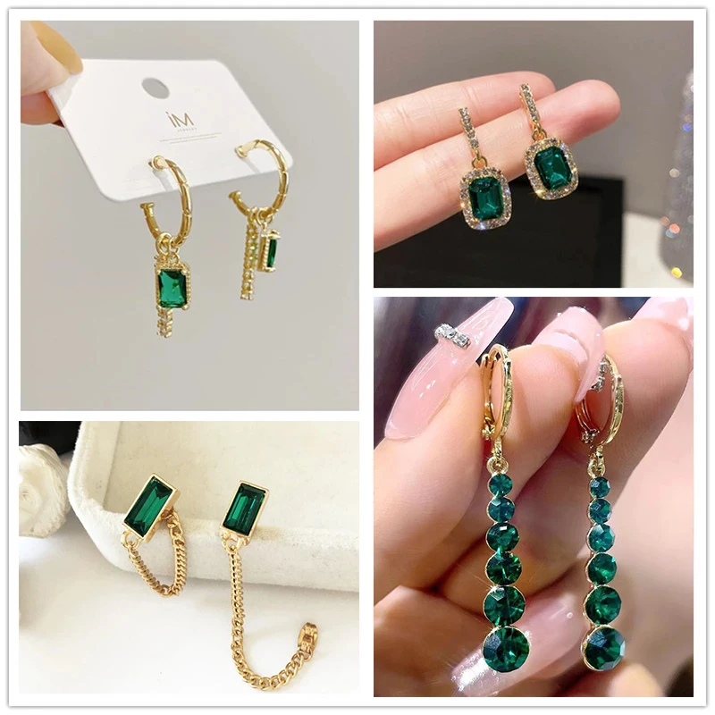 Korean Green Crystal Stone Drop Earrings for Women Trendy Rhinestone Geometric Tassel Dangle Earring Girl Party Fashion Jewelry