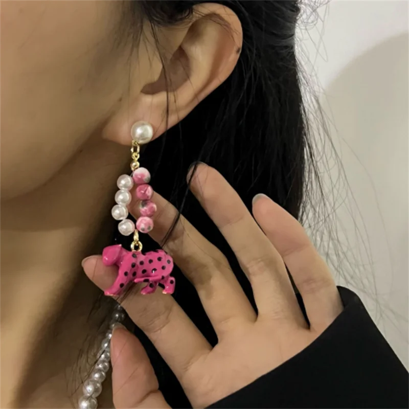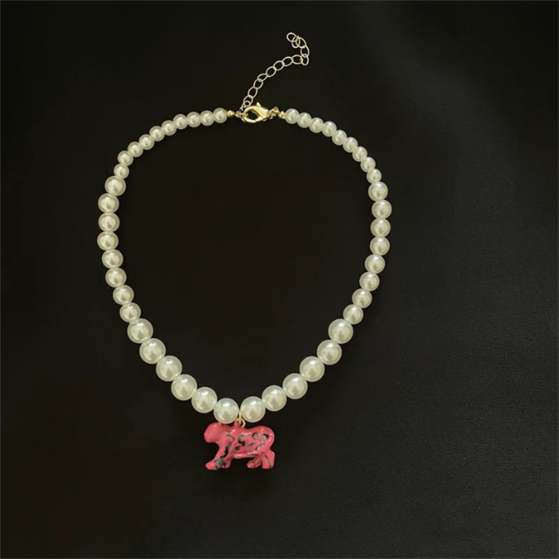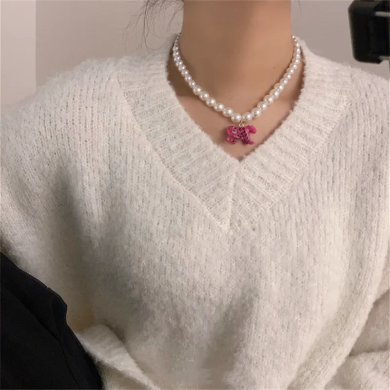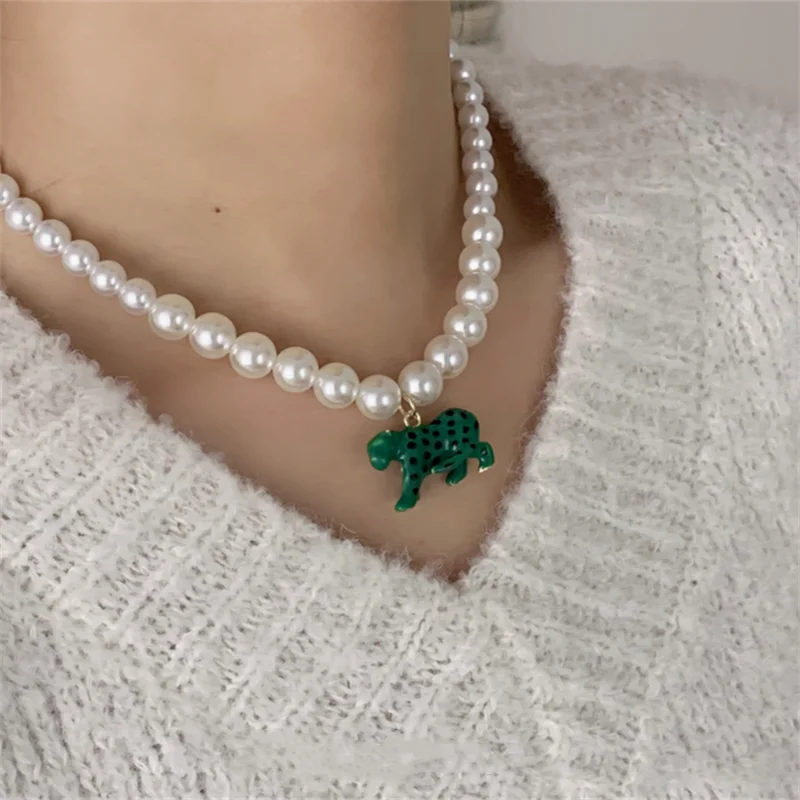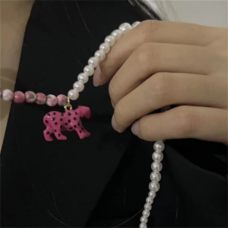 Minority Design Pearl Pink Leopard Light Luxury Fashion Short Necklace Sweet Cool Choker Collarbone Chain Female All-Match