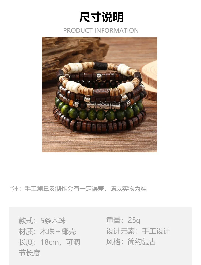 New Vintage Men's Bracelet Shell Coconut Shell Beaded Bracelet Multi Layer Handwoven Wooden Beaded Bracelet Bohemian Accessories