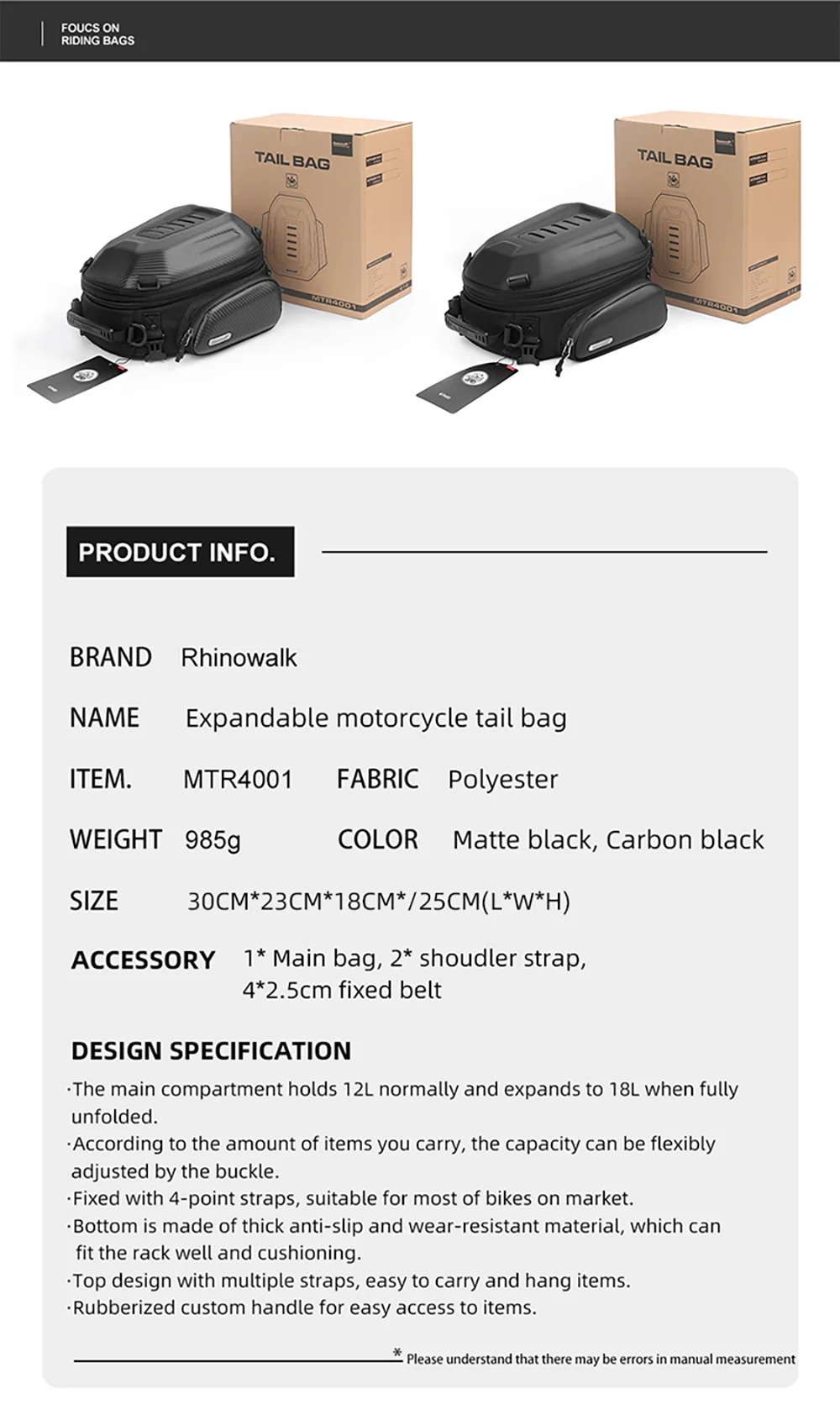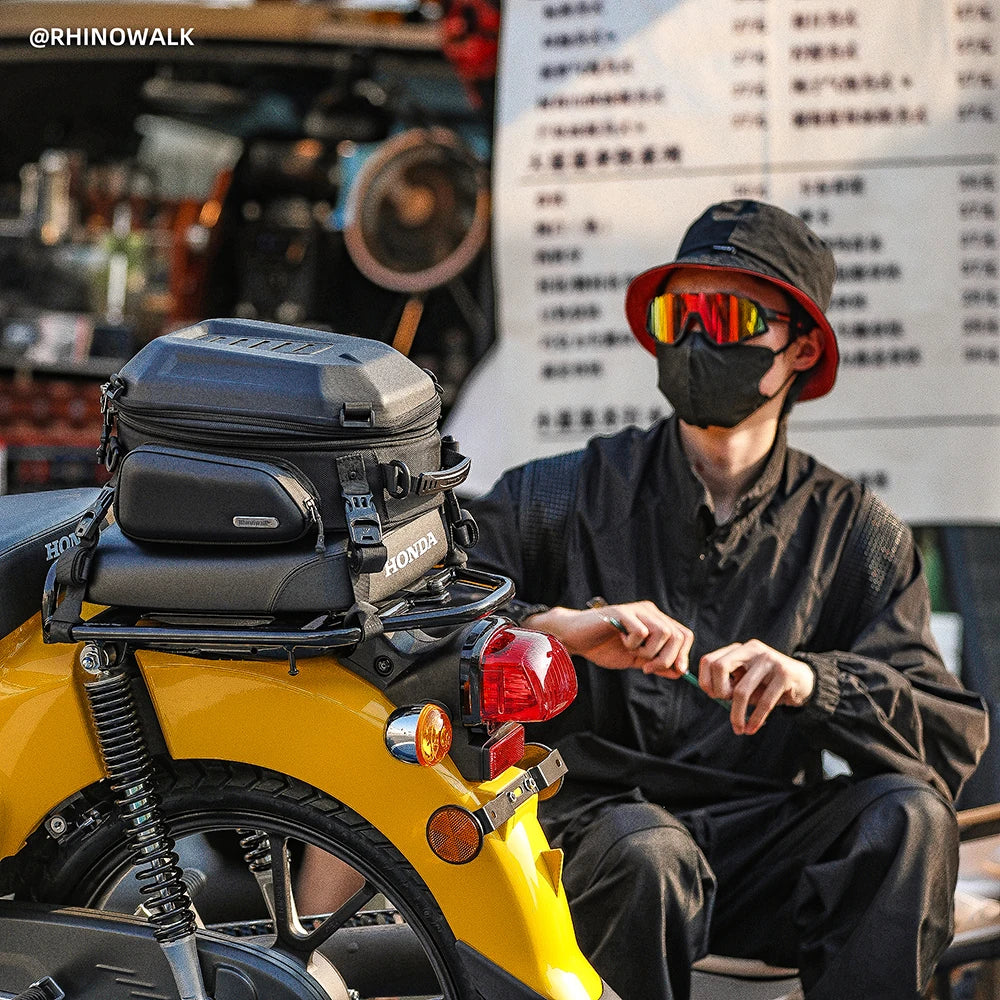 Rhinowalk Motorcycle Rear Seat Bag 12L-18L Expandable Motor Hard Shell Backpack Outdoor Motocross Trunk Tail Bag Pannier Luggage