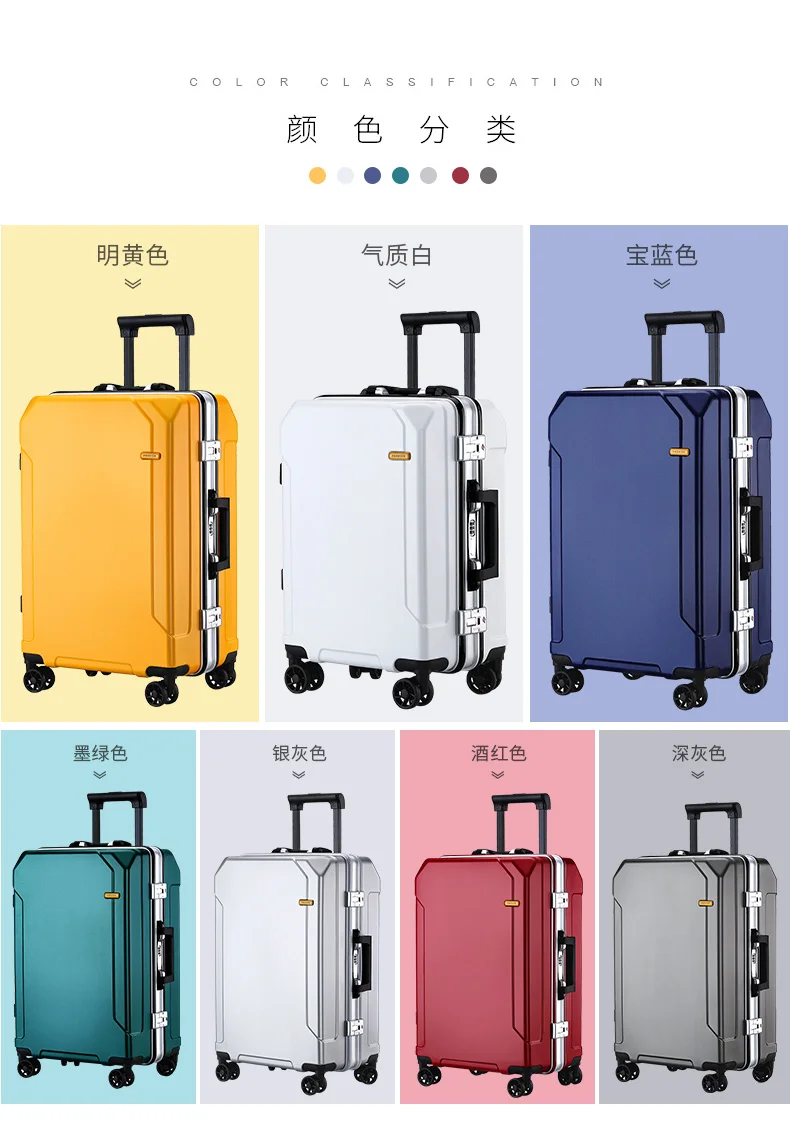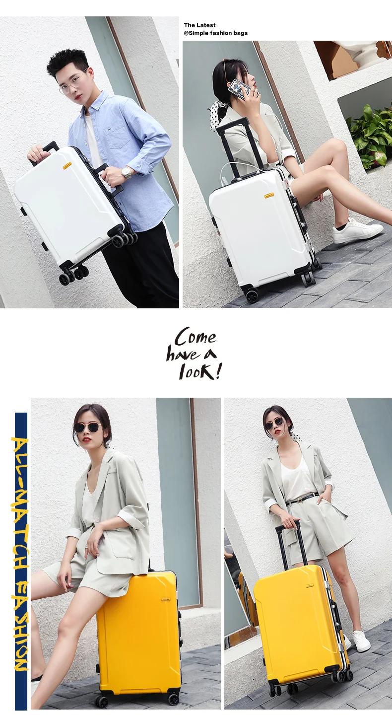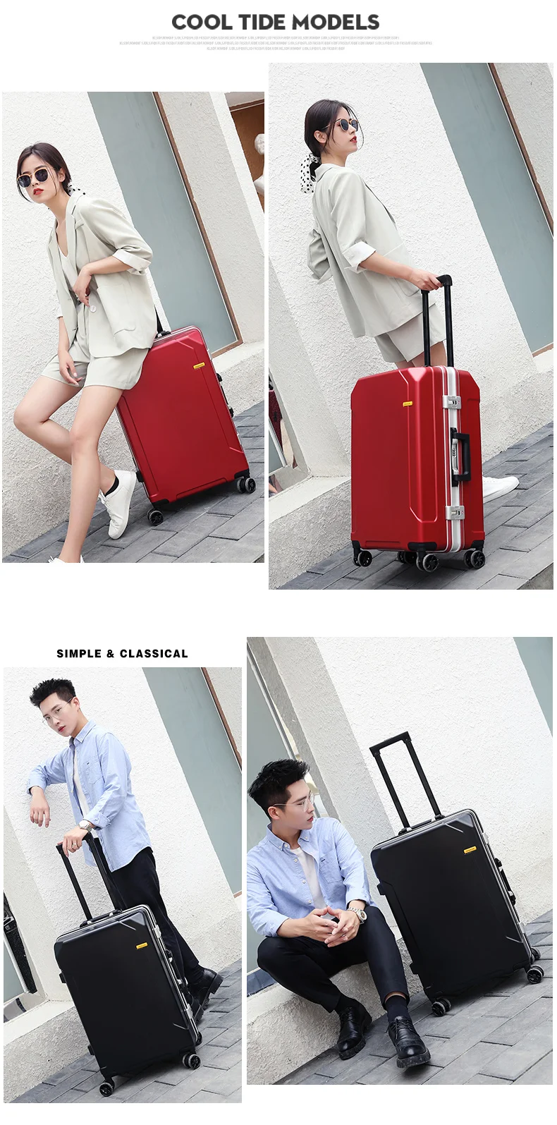 Travel Luggage fashion 20/24/28 inch suitcase aluminum frame trolley case for men and women small 20 inch cabin suitcase