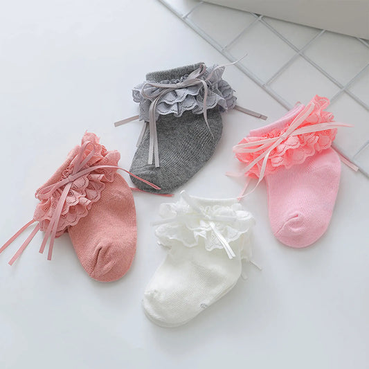 Kids Baby Girls Socks Cute Baby Princess Dress Socks with Lace Bow for Toddler Clothing Accessory 0-8Y