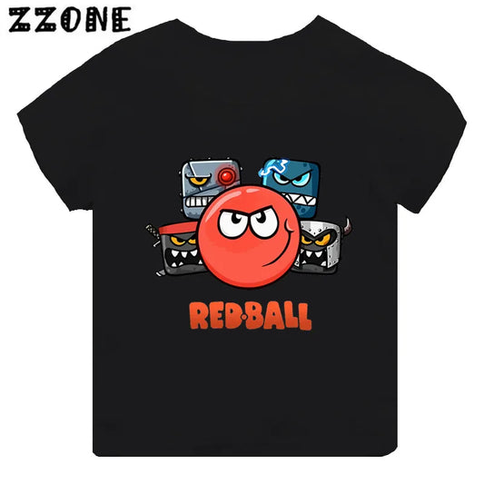 Hot Sale Red Ball 4 Print Cartoon Kids T-shirt Funny Girls Clothes Baby Boys Black Short Sleeve T shirt Children Tops,TH5849