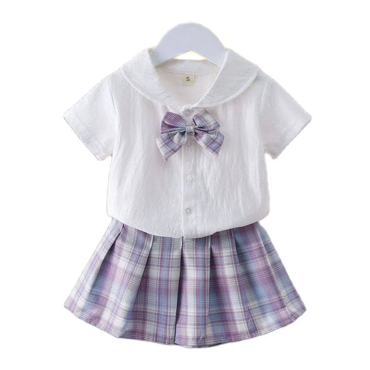 Girls College Style Jk Uniform Pleated Skirt + Short Sleeves Shirts Summer Children Big Kids School Students Sweat Clothes 0-12Y