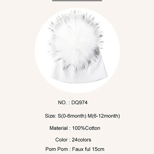 Geebro Newborn Soft Ribbed Cotton Beanies Hats With Faux Fur pompom For Baby Girls Boys Autumn Winter Kids Baby Hats