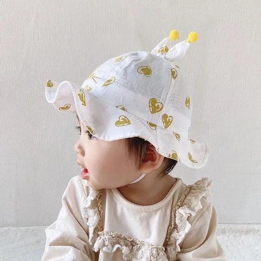 Heart Embroidery Baby Buckle Hat Cartoon Lovely Bows Soft Cotton Newborn Infant Fisherman Hat Outdoor Sunscreen Kids Sun Caps