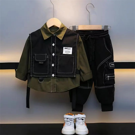 Boys Spring And Autumn Suit Set Boys Two Piece Cowboy Vest Set Korean Edition Children's Fashionable Two Piece Kids Outfits 2024