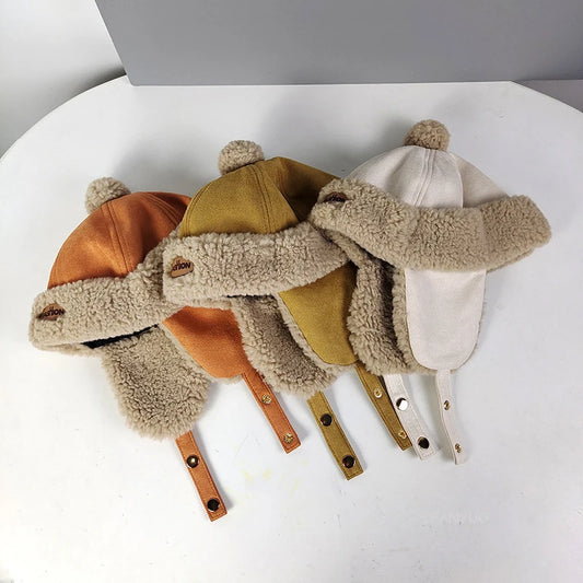 Boy Baby Plush Warm Scarf Hat Set Autumn Winter Plush Thick Girl Kid Ear Protection Cap Simple Versatile Children Pullover Caps