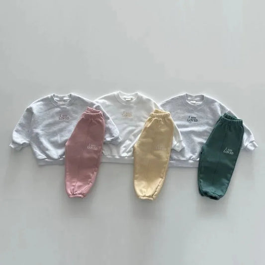 Baby Boy Girls Spring Sports Suit Kids Clothes Sets Letter Print Sweatshirt +sweatpants Children Autumn Cotton Casual Sportswear