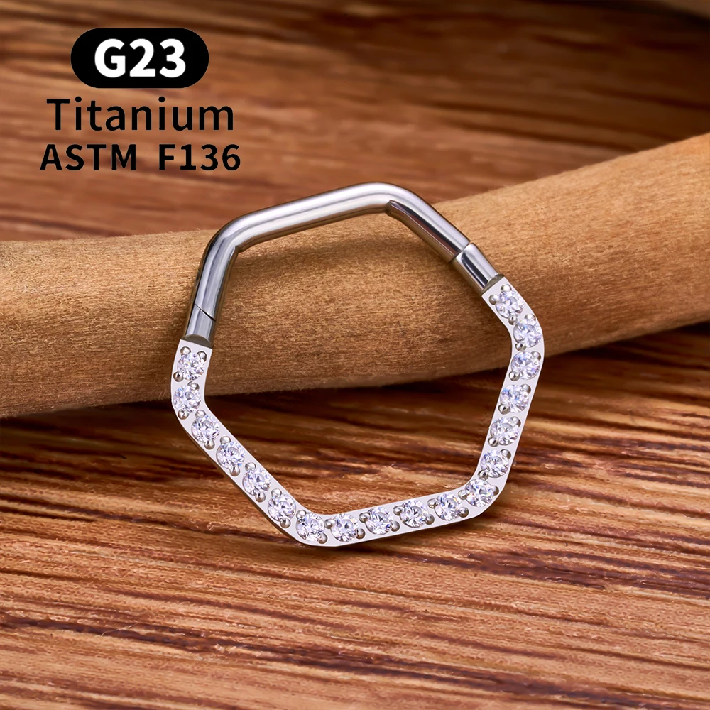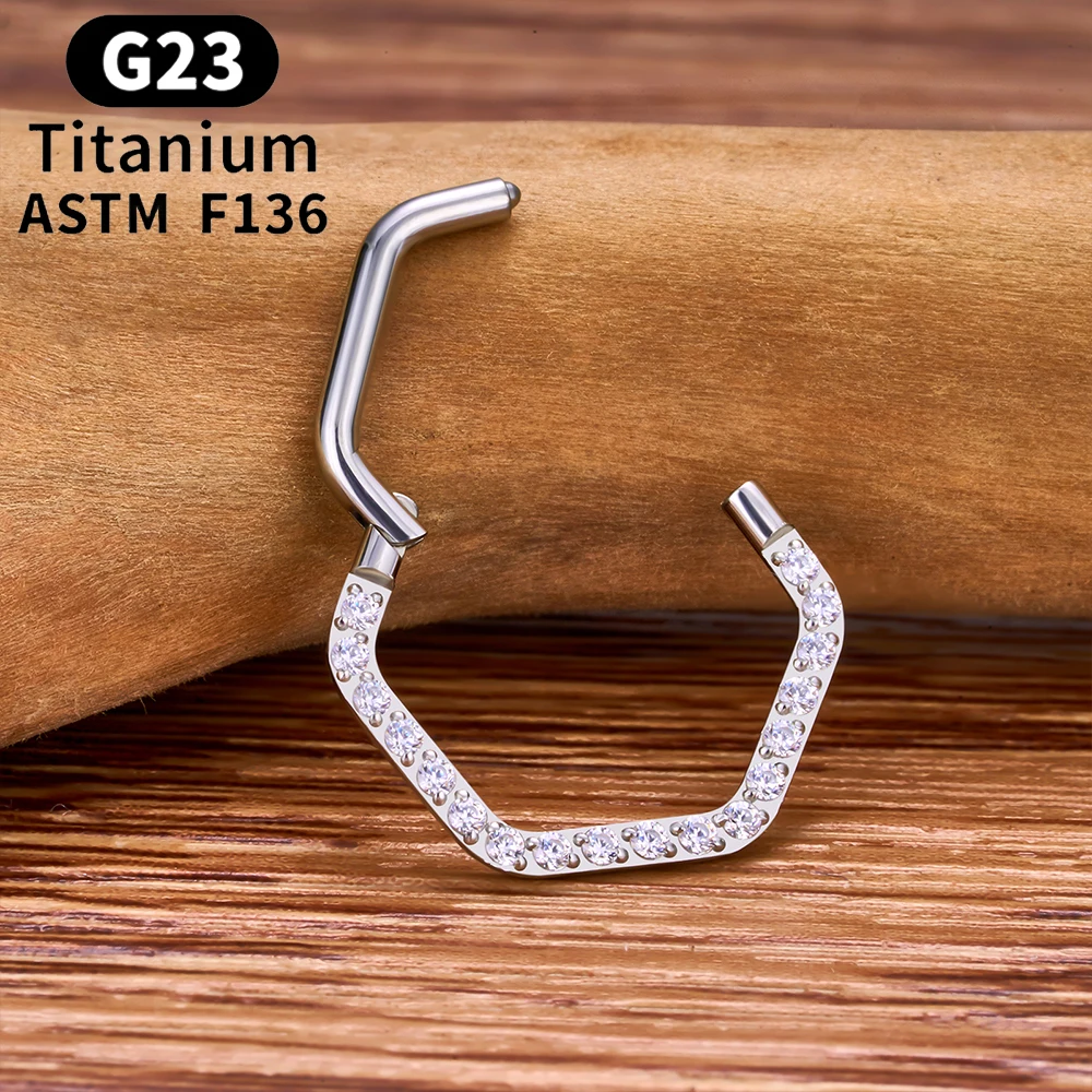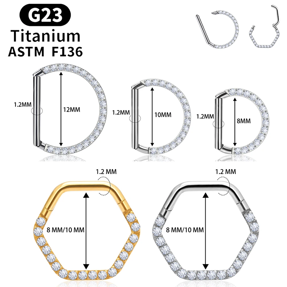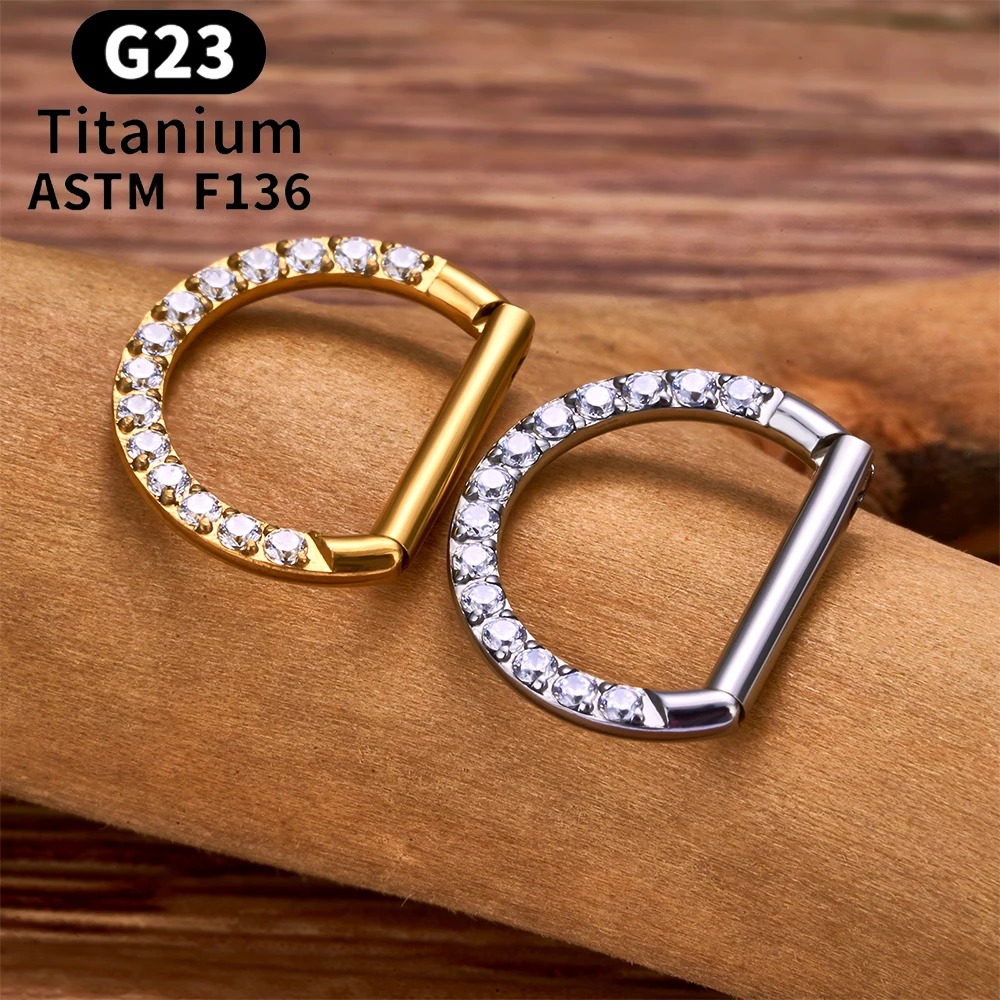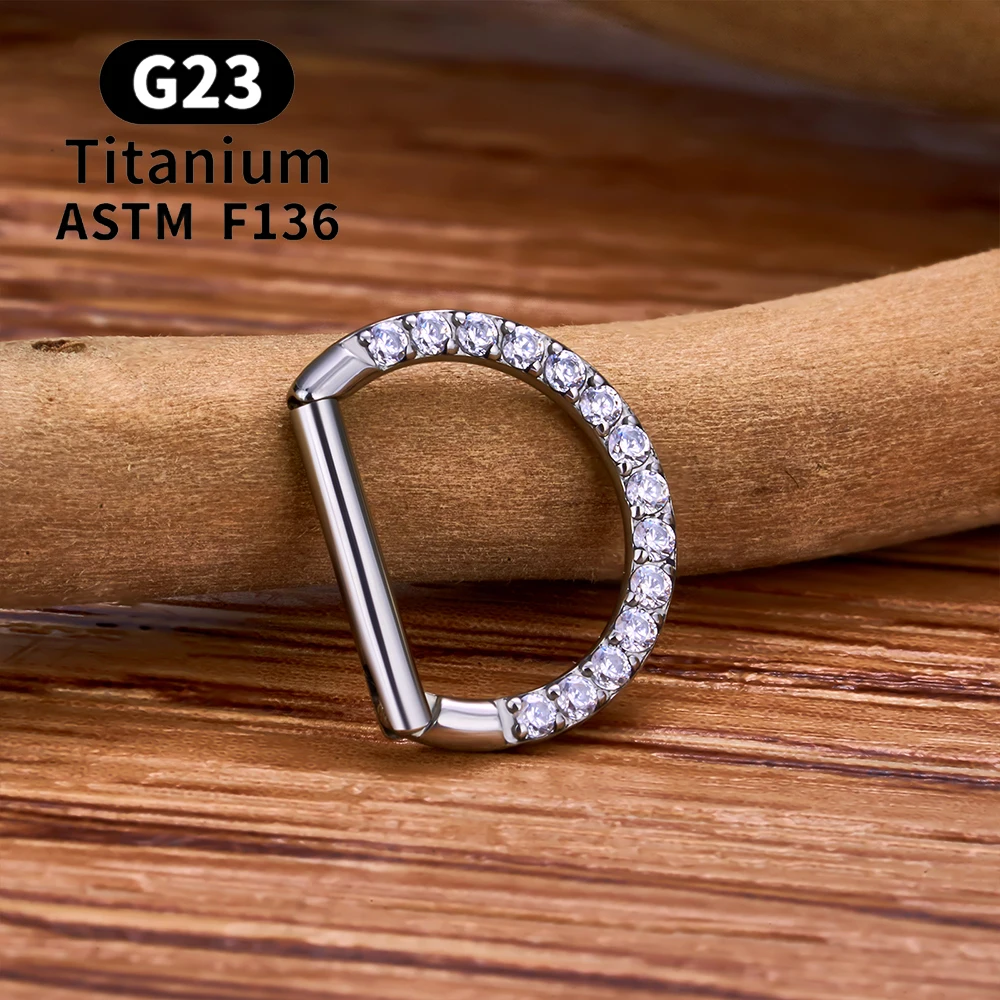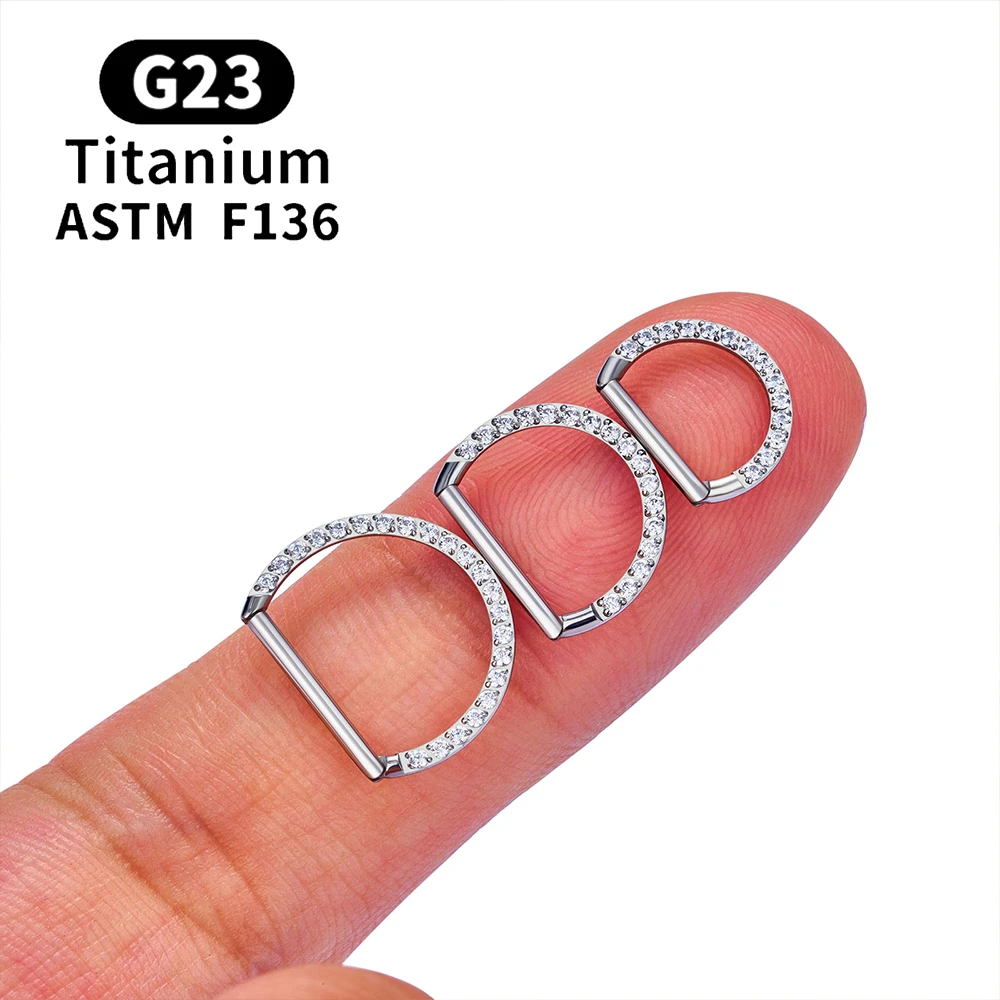 1/10PCS G23 Titanium Piercing Septum Clicker D Shape Nose Ring 16G CZ Tragus Ear Cartilage Conch Daith Earrings Body Jewelry