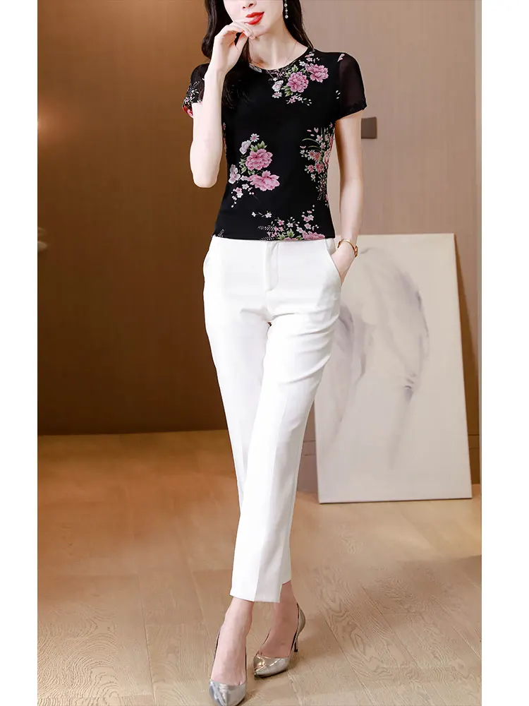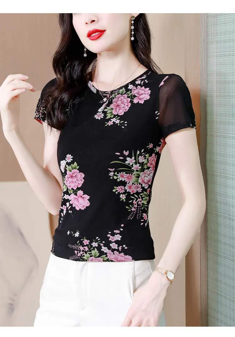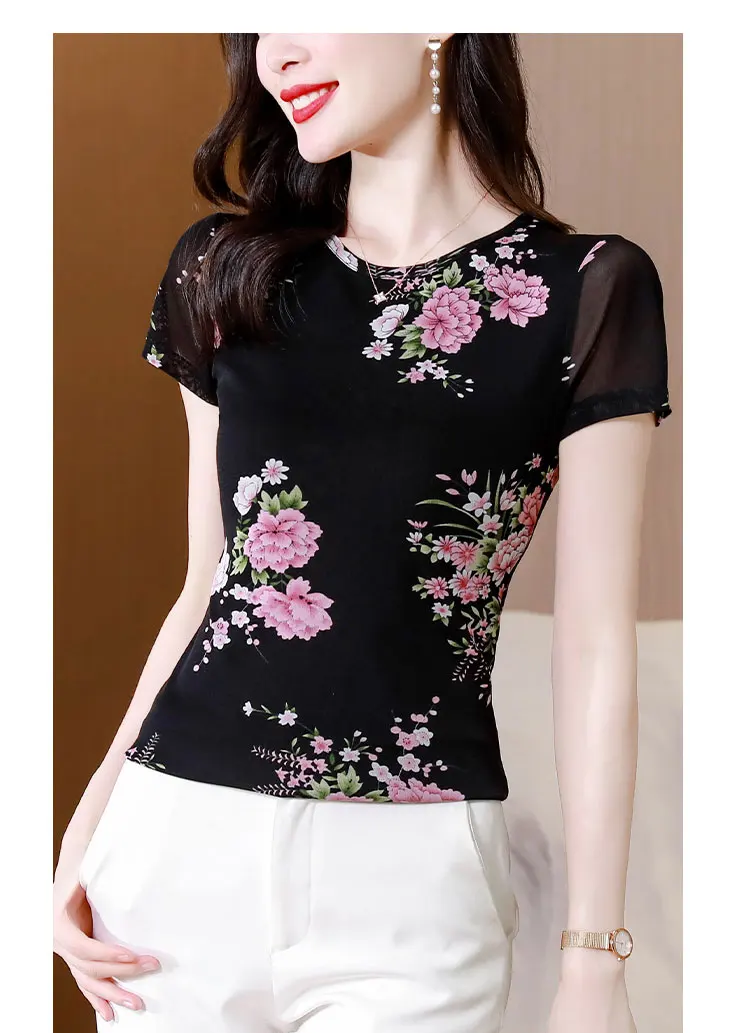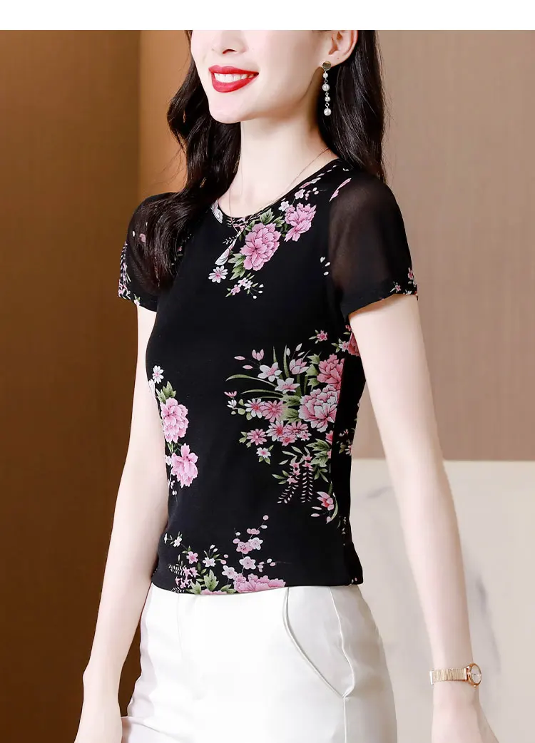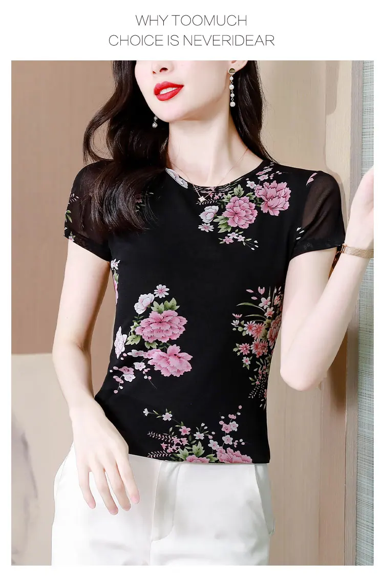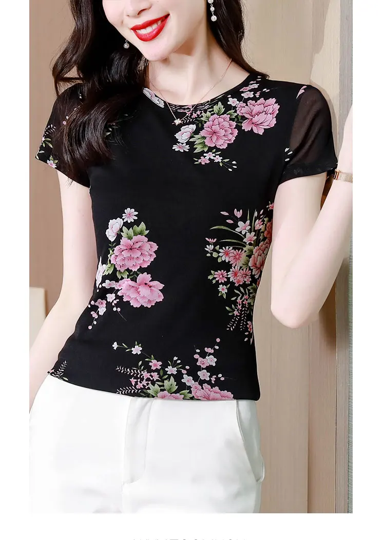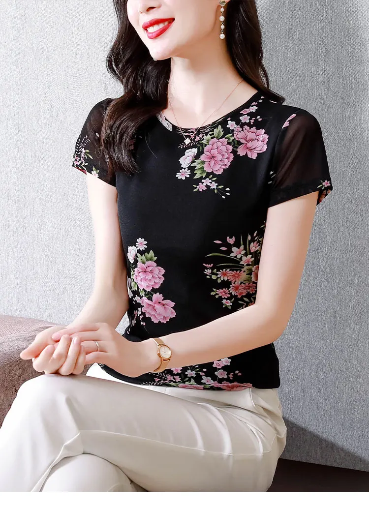 Ladies Spring Summer Clothing Floral Graphic O-Neck Pullovers Short Sleeve Tops Streetwear Women's T-Shirts New