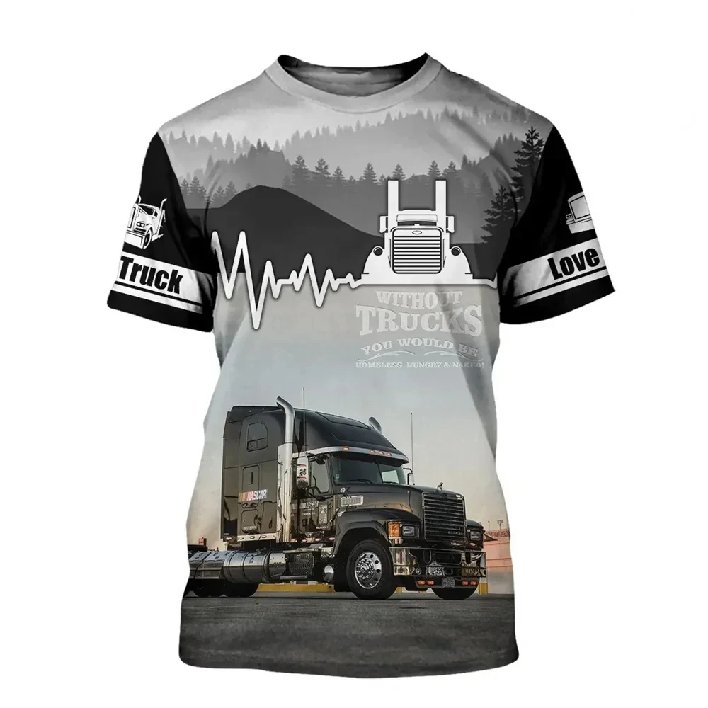 Men's 3d Print Truck Driver T -shirt Heavy Caterpillar Neutral Street Men's T-shirt Summer Fashion Casual Men's Daily Clothing
