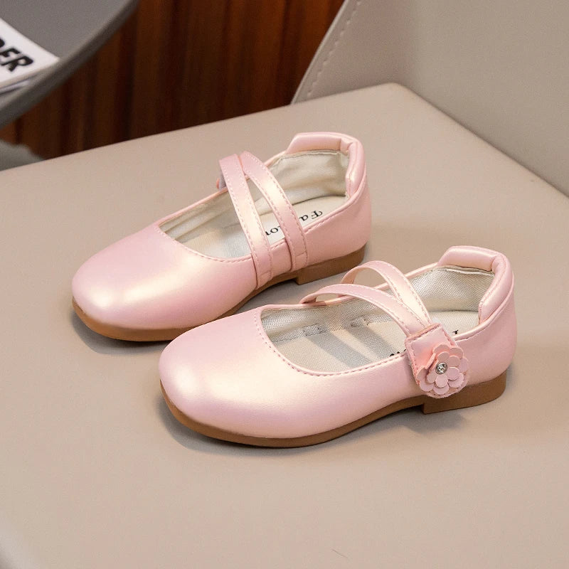 Princess Girls Shoes Kids Leather Shoes For Medium Big Girl Children Casual Flats Floral Flowers Shoes For Wedding Birthday Show