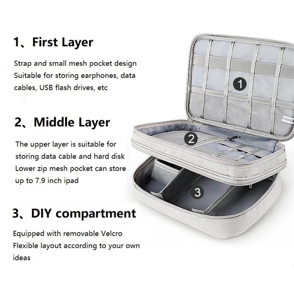 Waterproof Double Layers All-in-One Large Capacity Travel Organizer Electronics Accessories Portable Cable Storage Bag Tablet