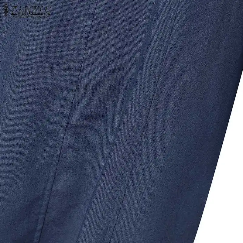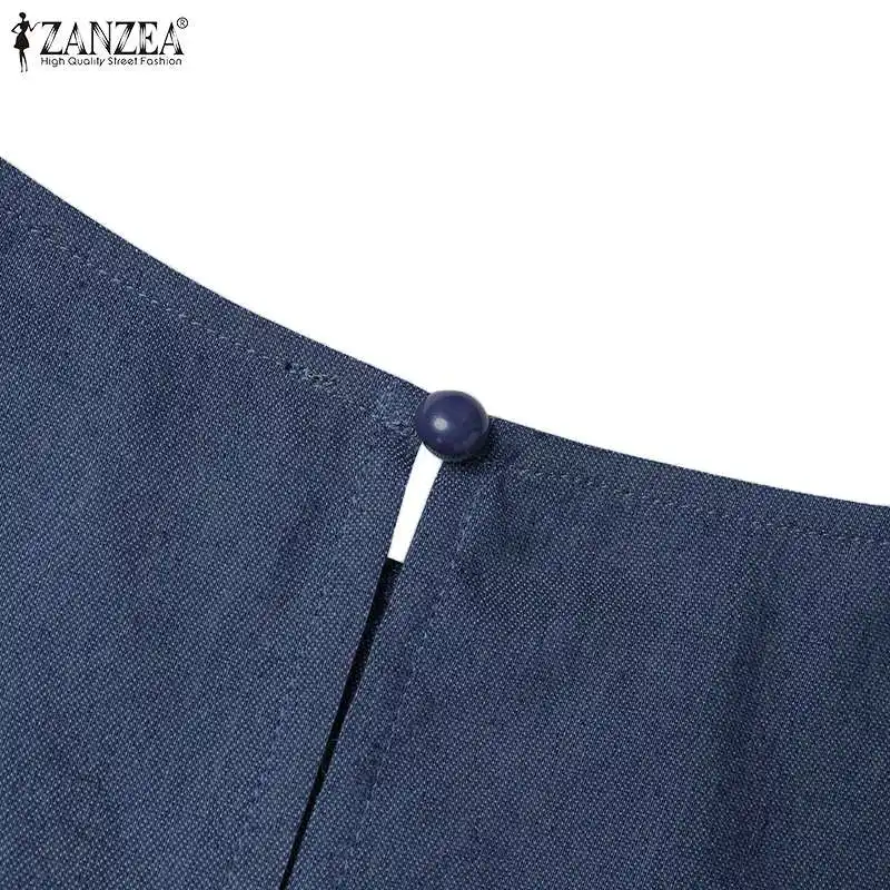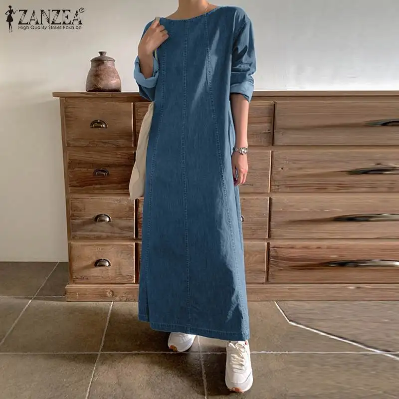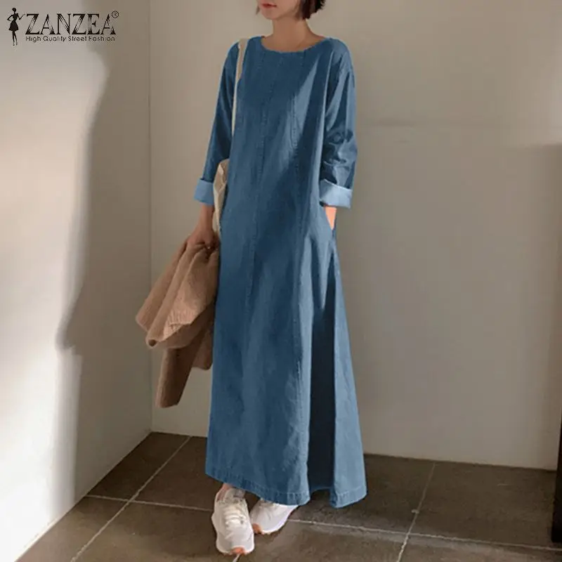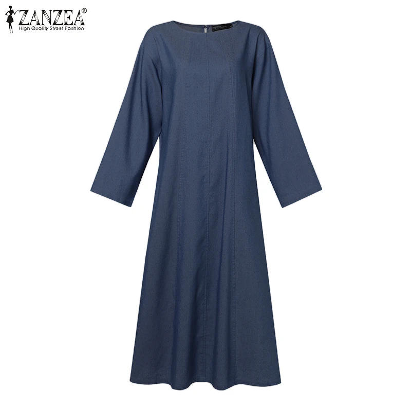 ZANZEA Woman Fashion Work OL Denim Dress Long Sleeve O-Neck Solid Dresses Casual Loose Sundress Autumn Elegant Party Vestidos